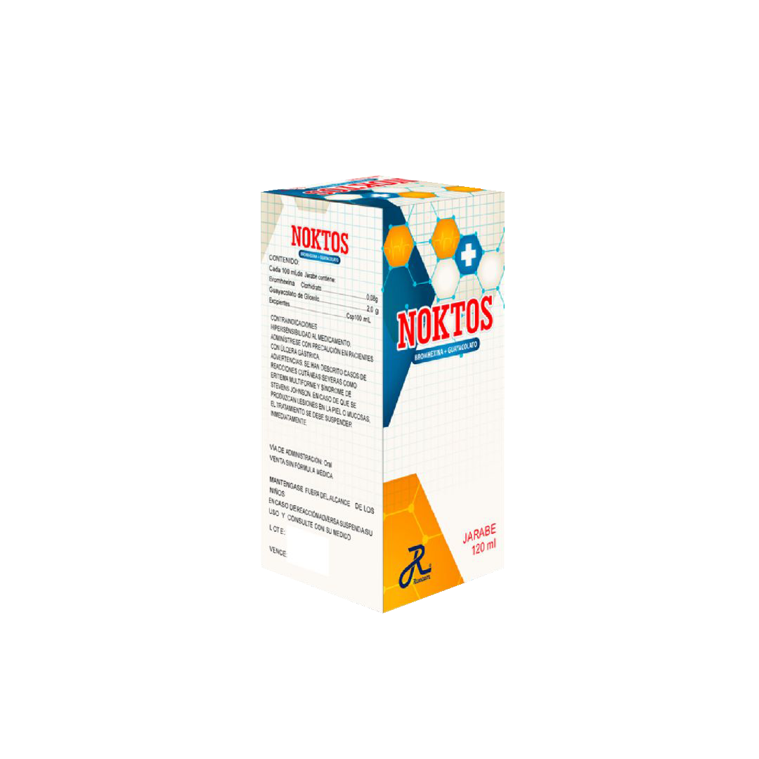 Noktos Descripción Bromhexina 0.08 g. Guayacolato 2.0 g Presentación Frasco por 120 ml Ver otros productos: Bronco Flem Pluss Gazolex Drenolax Pluss Bronco Flem << regresar al catalogo